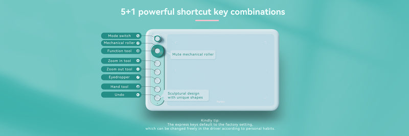 - 5 customizable express keys with mechanical mute wheel design
